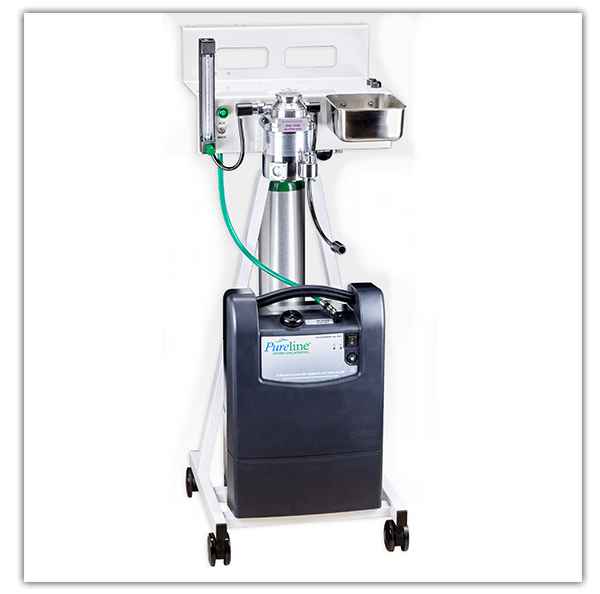 - Extracts medical grade oxygen (USP93%) from the air and delivers it on demand- up to 5 LPM